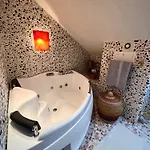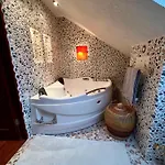 The apartment is equipped with a bathroom that features a dryer and towels. Additionally, you'll find a spa bathtub, a hot tub, and a shower.